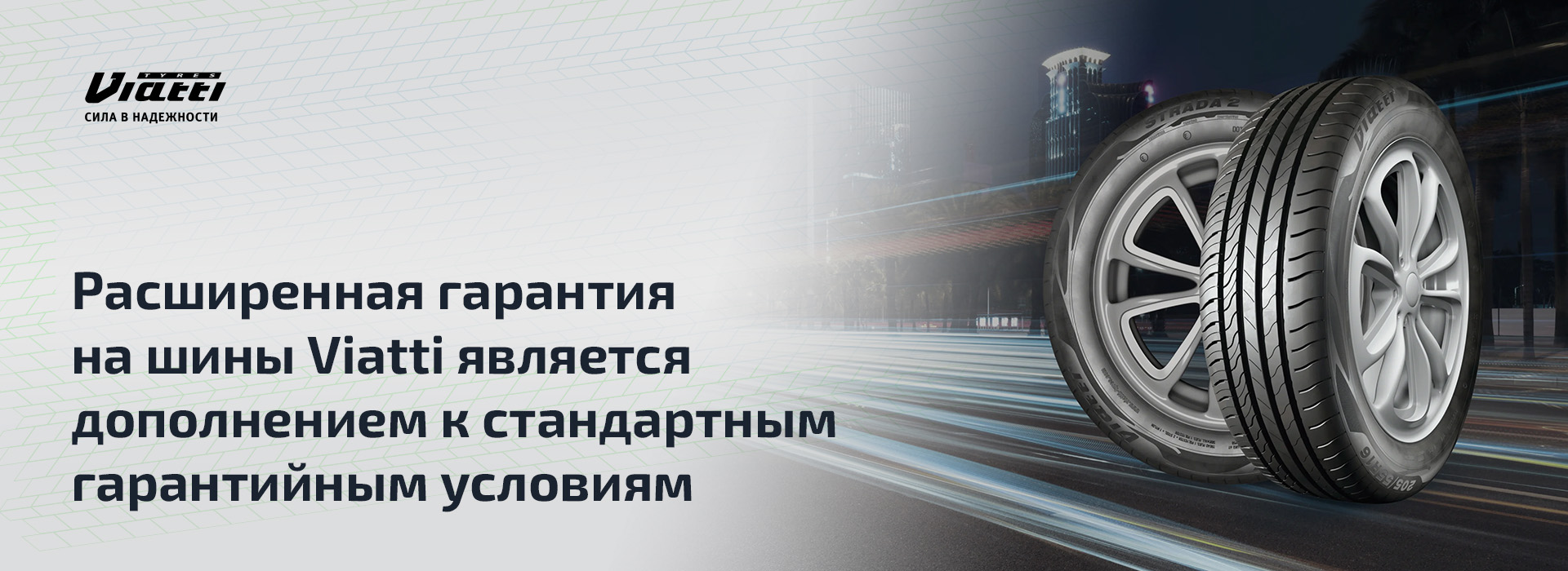 Двойная выгода в «BS-Tyres»! Отличное качество шин Viatti + расширенная гарантия на покупку комплекта, что включает гарантийный ремонт.